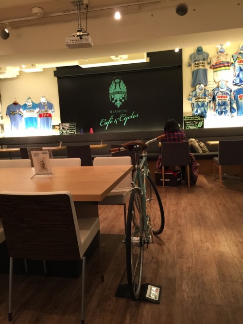私事ですが、お休みの日に自由が丘にある念願の「ビアンキカフェ」に行ってまいりました(*´Д`*)ポポンッ