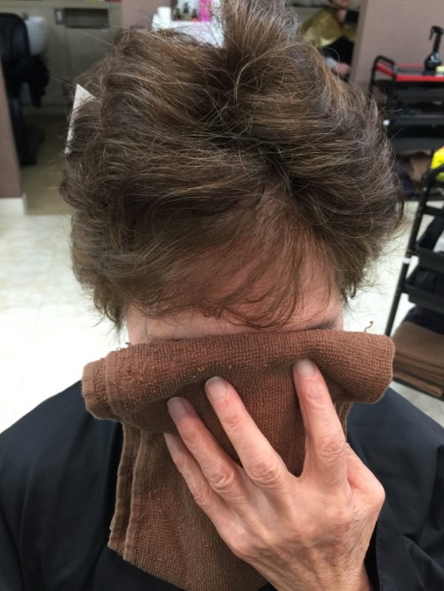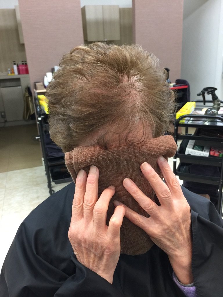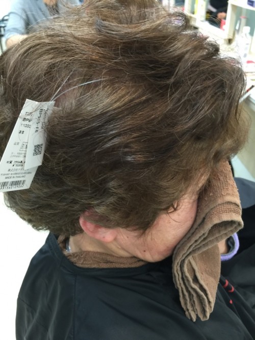 ↓ウィッグを付ける前の感じです。大体の方は白髪隠しに使う方が多いので色が抜けた時に合わせます。