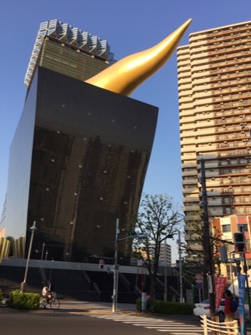 最後にみなさんが知ってるアサヒビールのビルを下から撮った1枚を載せて終わりにします(´゚艸゚)∴ブッ