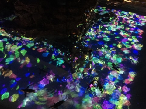 ペンギンの水槽のプロジェクトマッピングはキレイでした♪(ペンギンにはストレス半端なさそうだったけど)